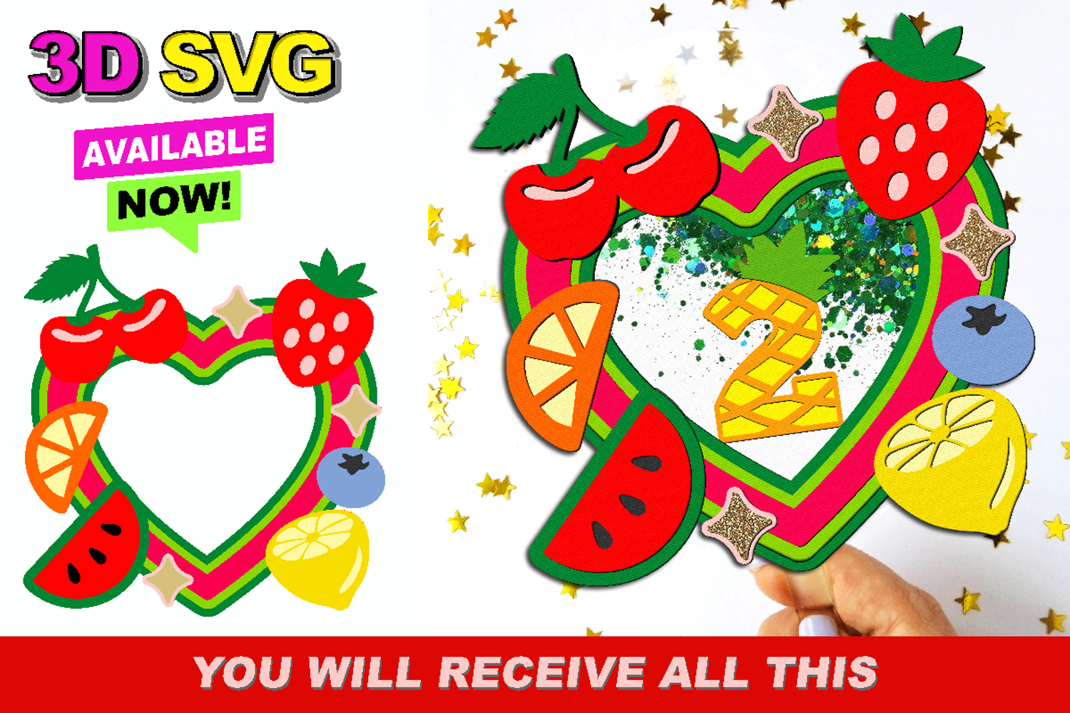 Tutti Fruitti Cake Topper 3D SVG example image 1
