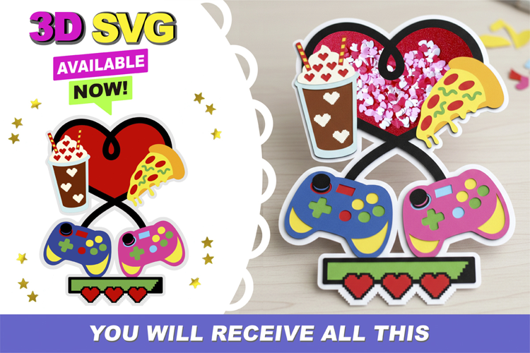 Gamer Love topper 3D SVG example image 1