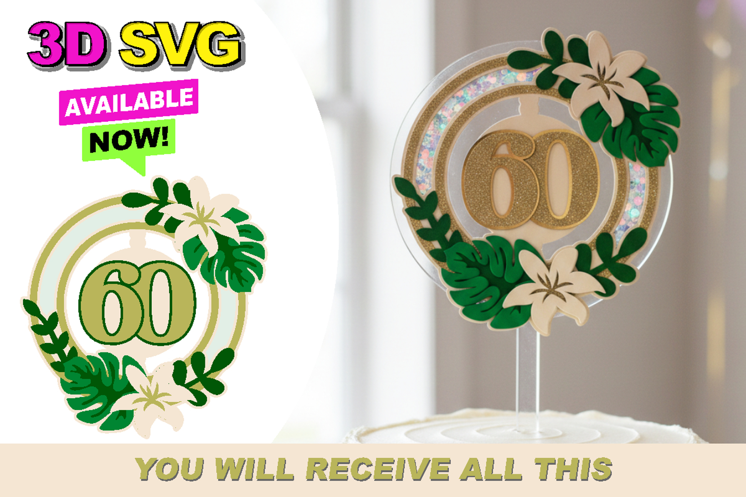Celebrate in paradise with this elegant 3D Tropical Floral Cake Topper! This meticulously layered SVG design brings a touch of island sophisticated to any birthday or anniversary, featuring lush monstera leaves, delicate lilies, and a stunning circular frame perfect for shaker effects.