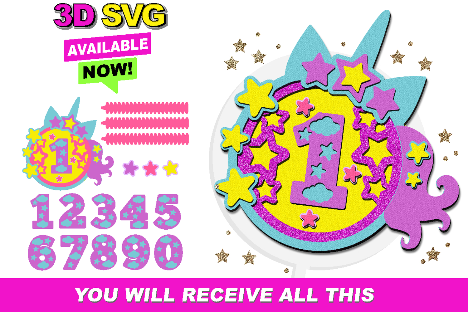 Unicorn cake topper SVG Spa