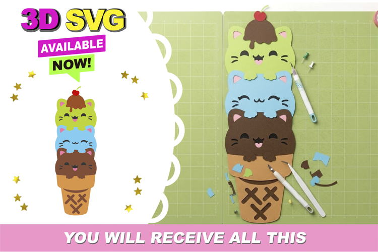 Sweeten Your Crafts with this Kawaii 3D "Ice Cream Cats" Layered SVG