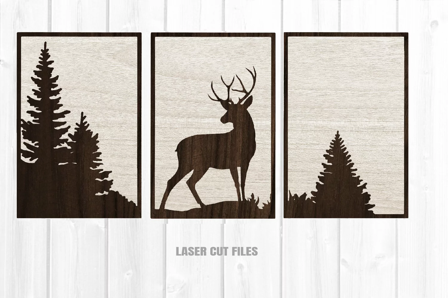 3 Piece Forest Deer Scene SVG Glowforge Laser Cut Files example image 1