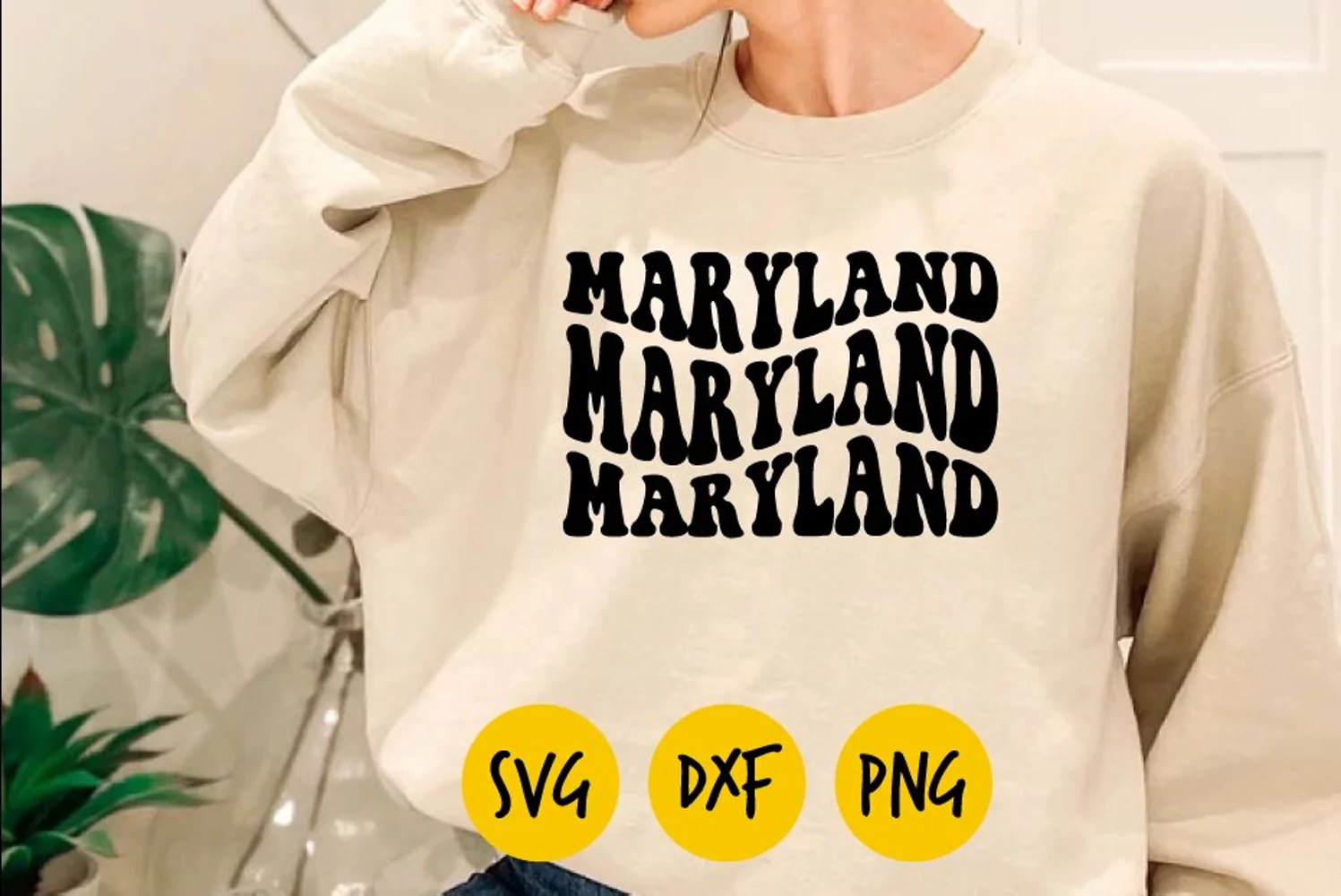 Trendy aesthetic Maryland SVG, wavy letters SVG, Maryland silhouette, Maryland sublimation, Maryland print, Maryland png, Maryland is my home, Maryland life, Maryland mom png, born and raised,