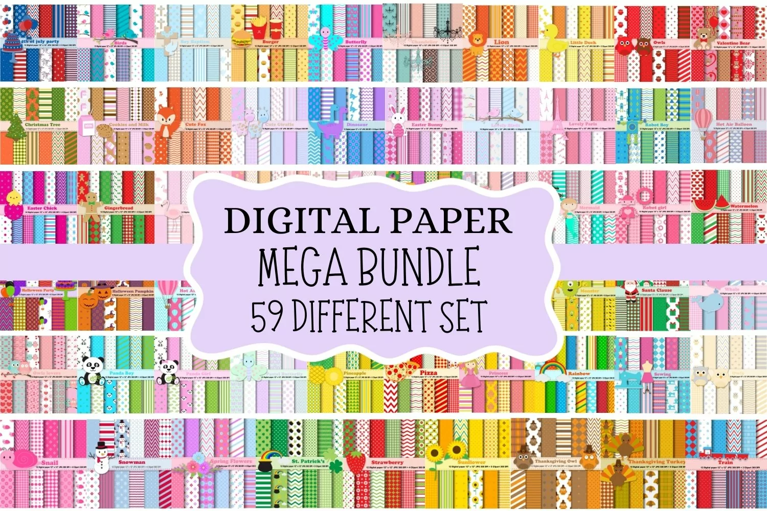 59 Digital Paper Mega Bundle Set.