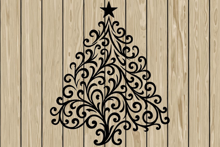 Christmas tree flourishes stencil silhouette SVG example image 1