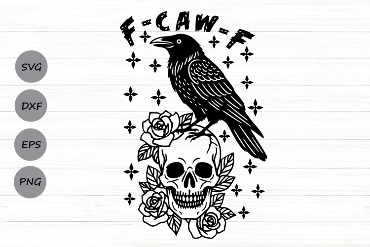 F-Caw-F Svg, Floral Skull Svg, Funny Halloween Crow Svg (SVG, DXF, PNG, EPS)