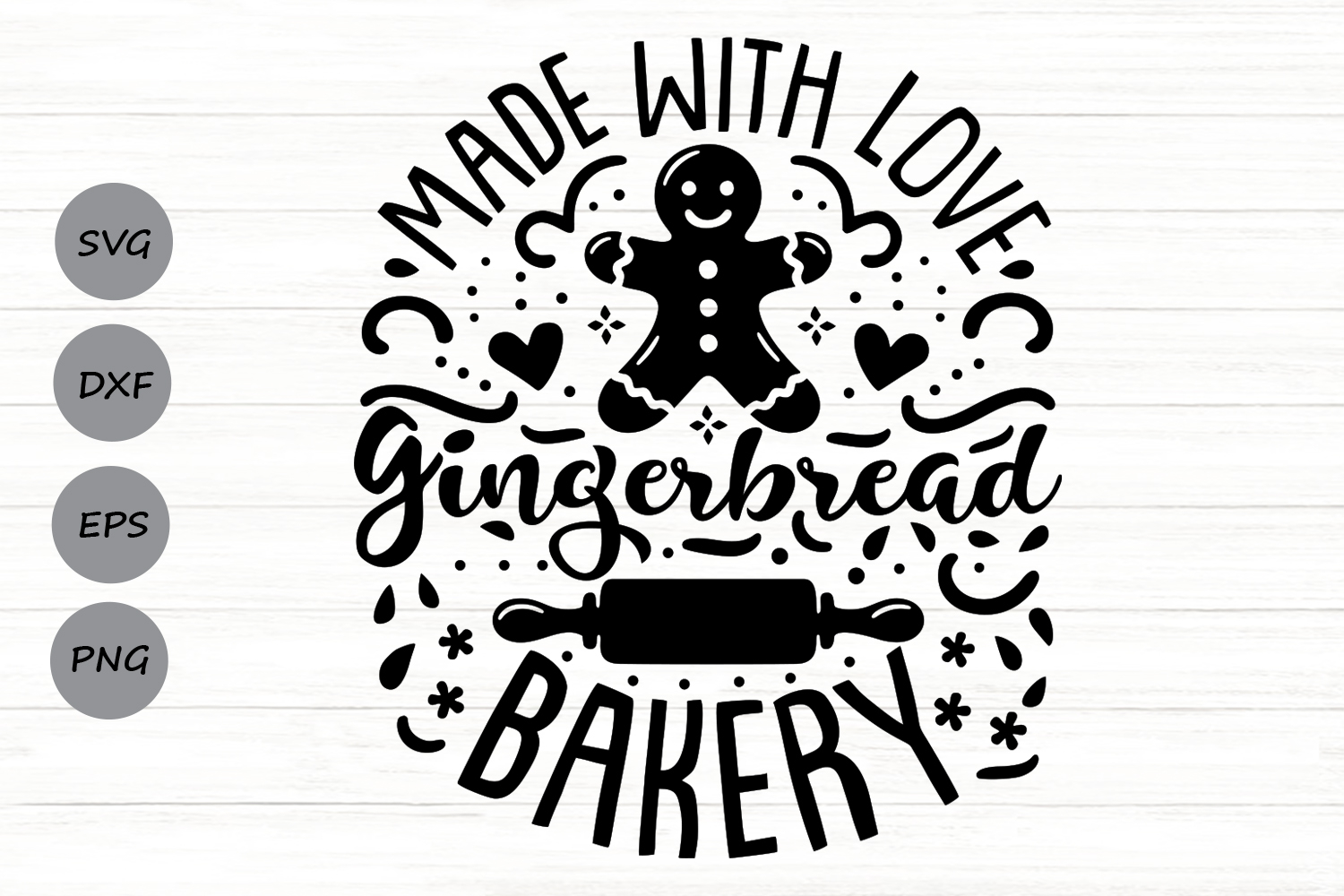Made With Love Gingerbread Bakery Svg, Christmas Baking Svg (SVG, DXF, PNG, EPS)