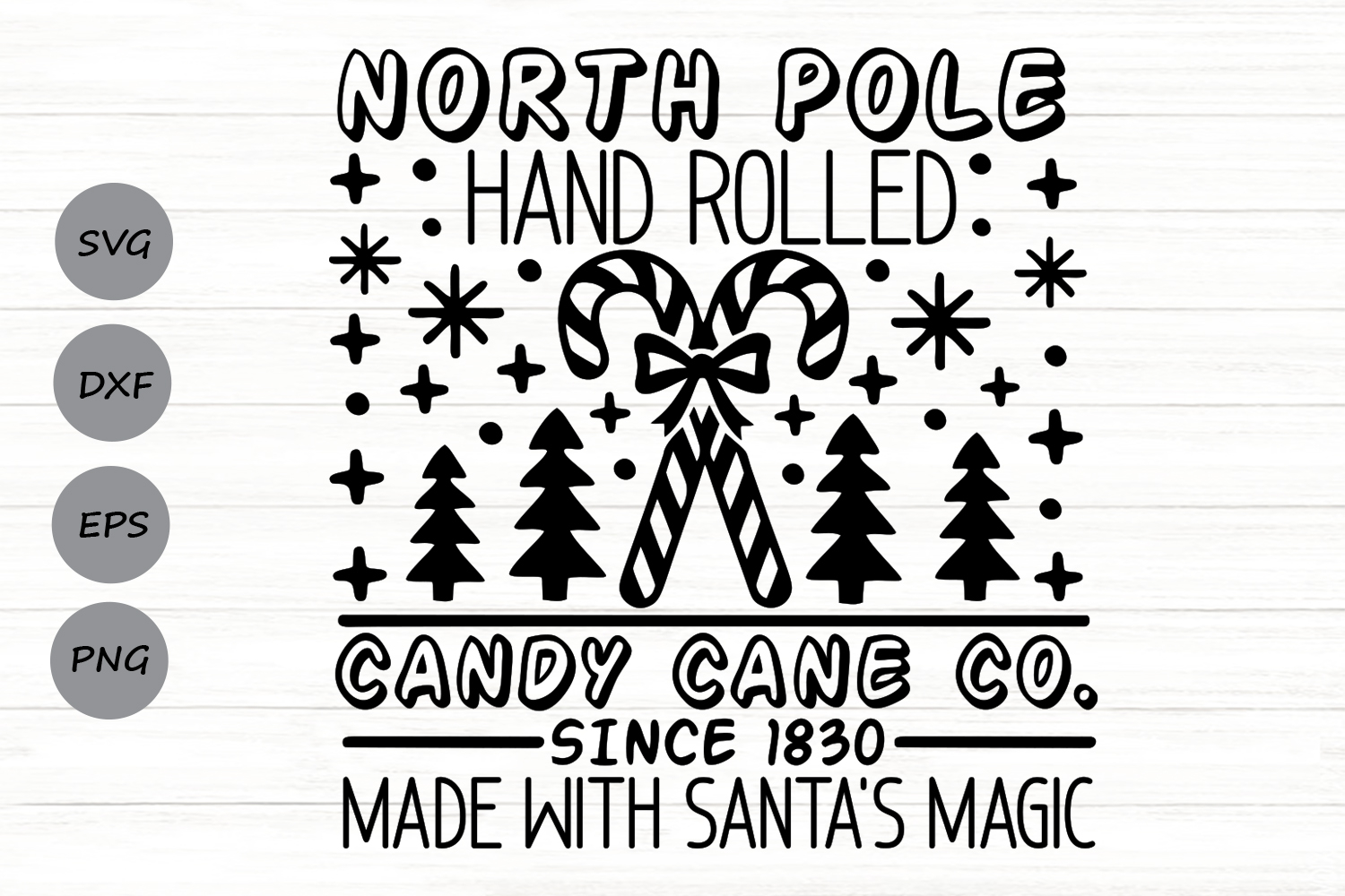 North Pole Hand Rolled Candy Cane Co. Svg, Candy Cane Svg (SVG, DXF, PNG, EPS)