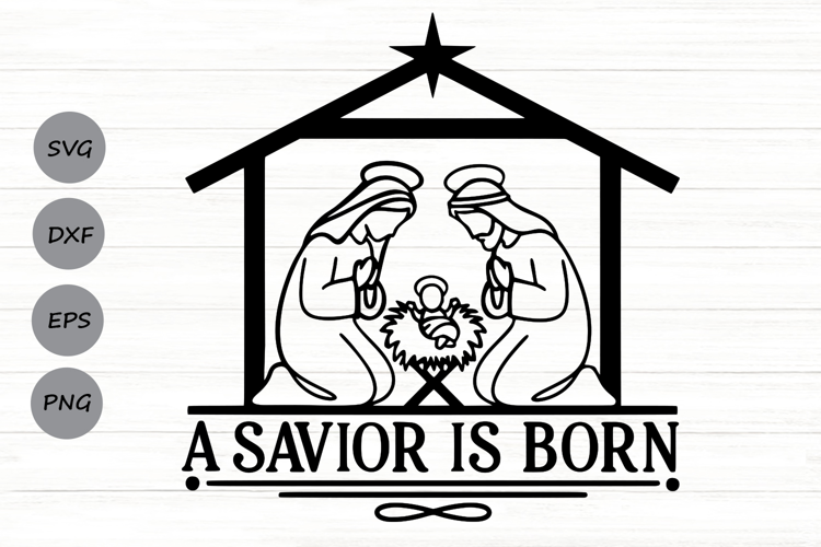 A Savior Is Born Svg, Christian Christmas Svg, Nativity Svg (SVG, DXF, PNG, EPS)