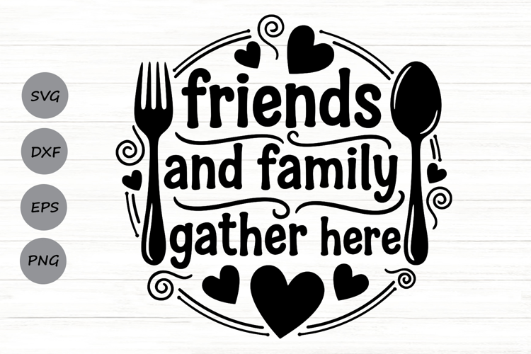 Friends And Family Gather Here svg, Farmhouse Kitchen Svg (SVG, DXF, PNG, EPS)