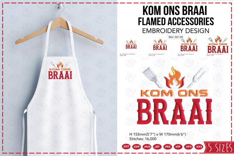 Kom Ons Braai Flamed Accessories Embroidery Design