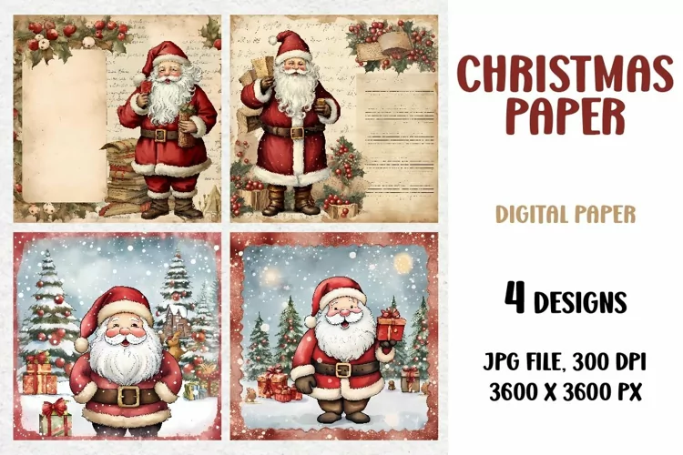 Similar Design Products to Santa Paper, Christmas Junk Journal, Digital Paper