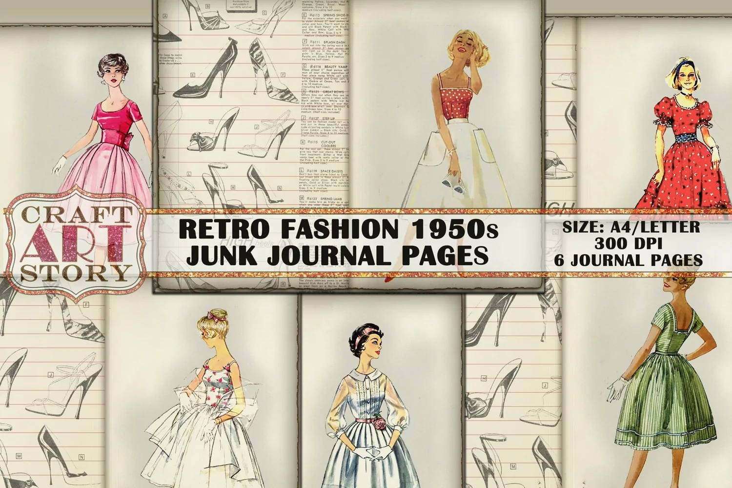 Retro fashion 1950s Junk Journal Pages,picture collage