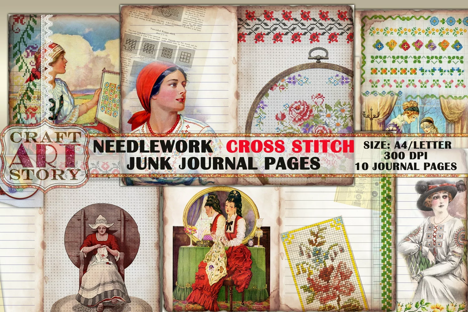Vintage Needlework CROSS STITCH Junk Journal Printable Pages
