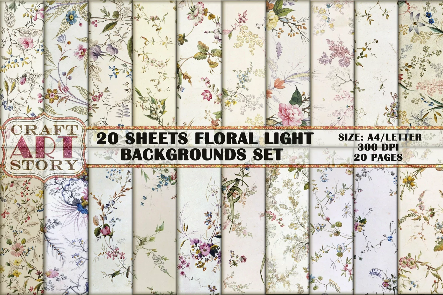 Similar Design Products to Kit Backgrounds Collage 20 Sheets floral light