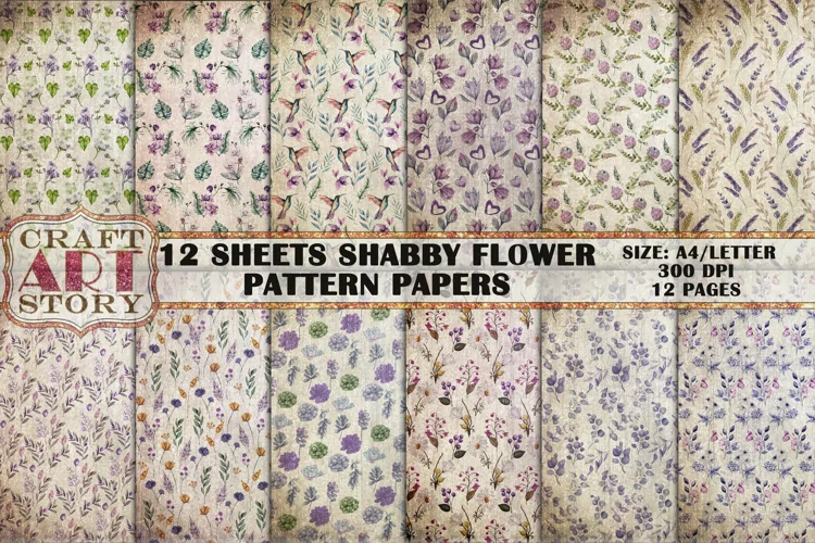 Pattern Papers 12 Sheets Shabby Flower example image 1