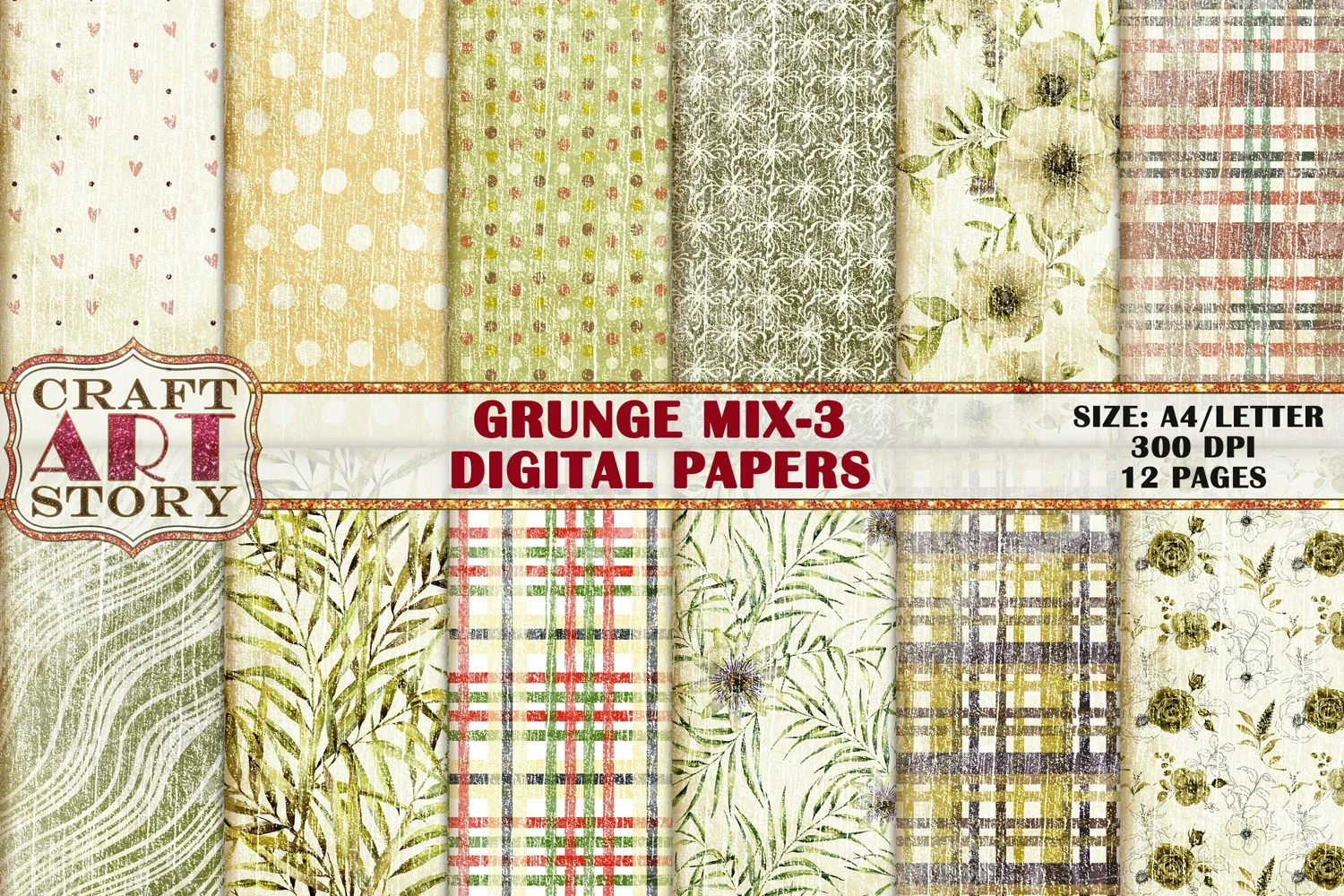 Grunge MIX floral Pattern Papers,Kit Backgrounds