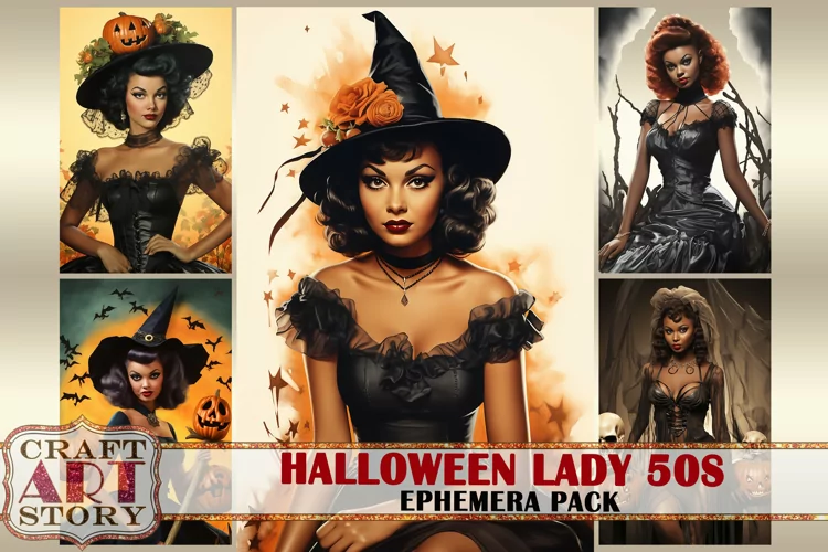 Halloween lady Ephemera Pack 50s,halloween ladies pinup