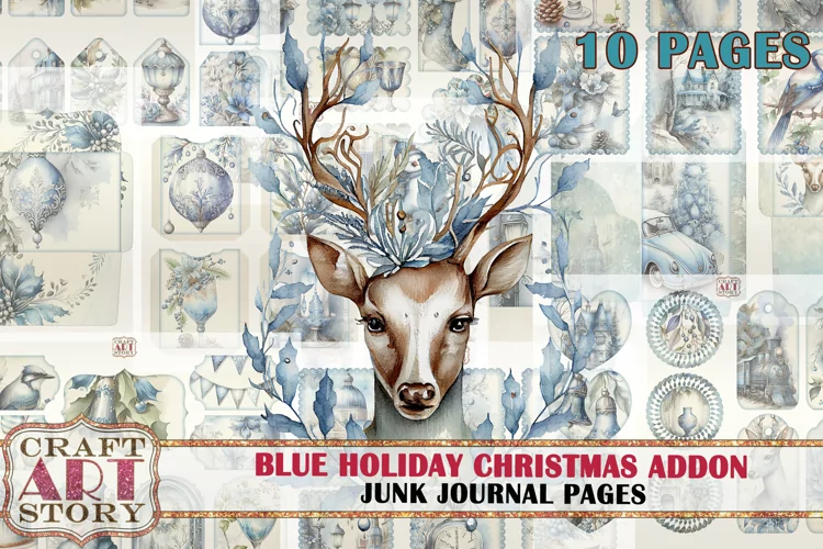 Blue Christmas Junk Journal Pages ADDON,winter Holiday