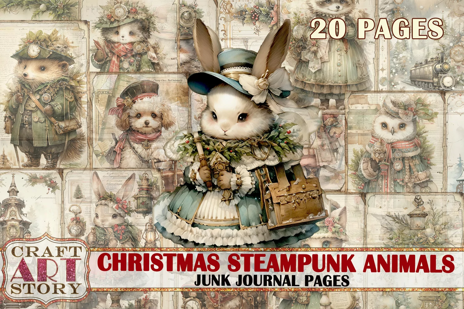 ADDON album link https://designbundles.net/craftartstory/2838383-christmas-steampunk-animals-junk-journal-pages-add