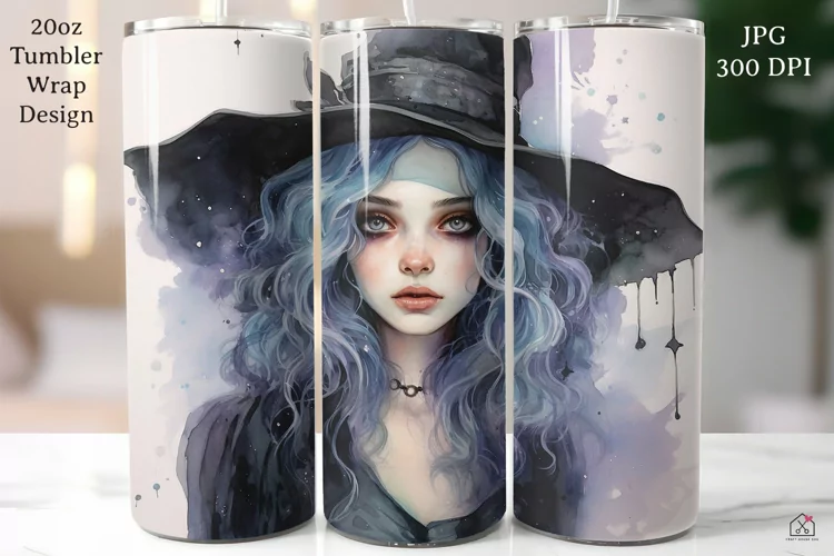 Witch Pastel Halloween 20oz Tumbler Wrap Sublimation Design example image 1