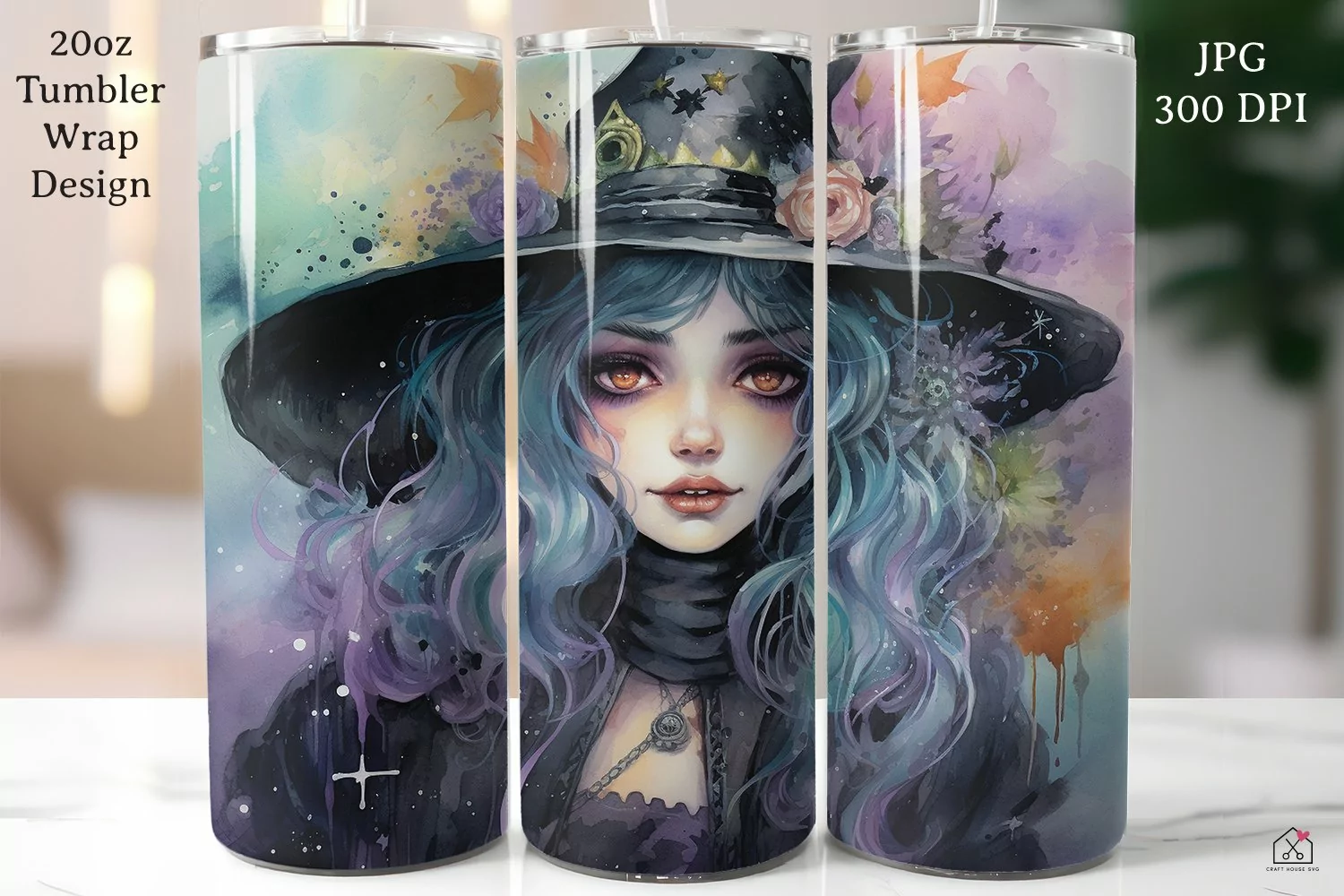 Pastel Halloween 20oz Tumbler Wrap Witch Sublimation Design example image 1