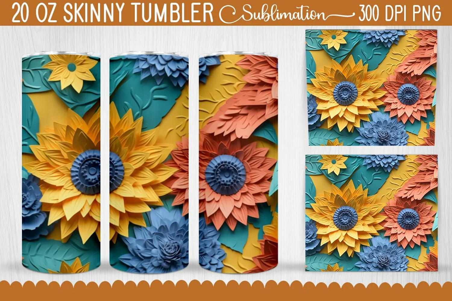 3d Sunflower Tumbler Wrap - Sunflower 3d Tumbler Sublimation example image 1