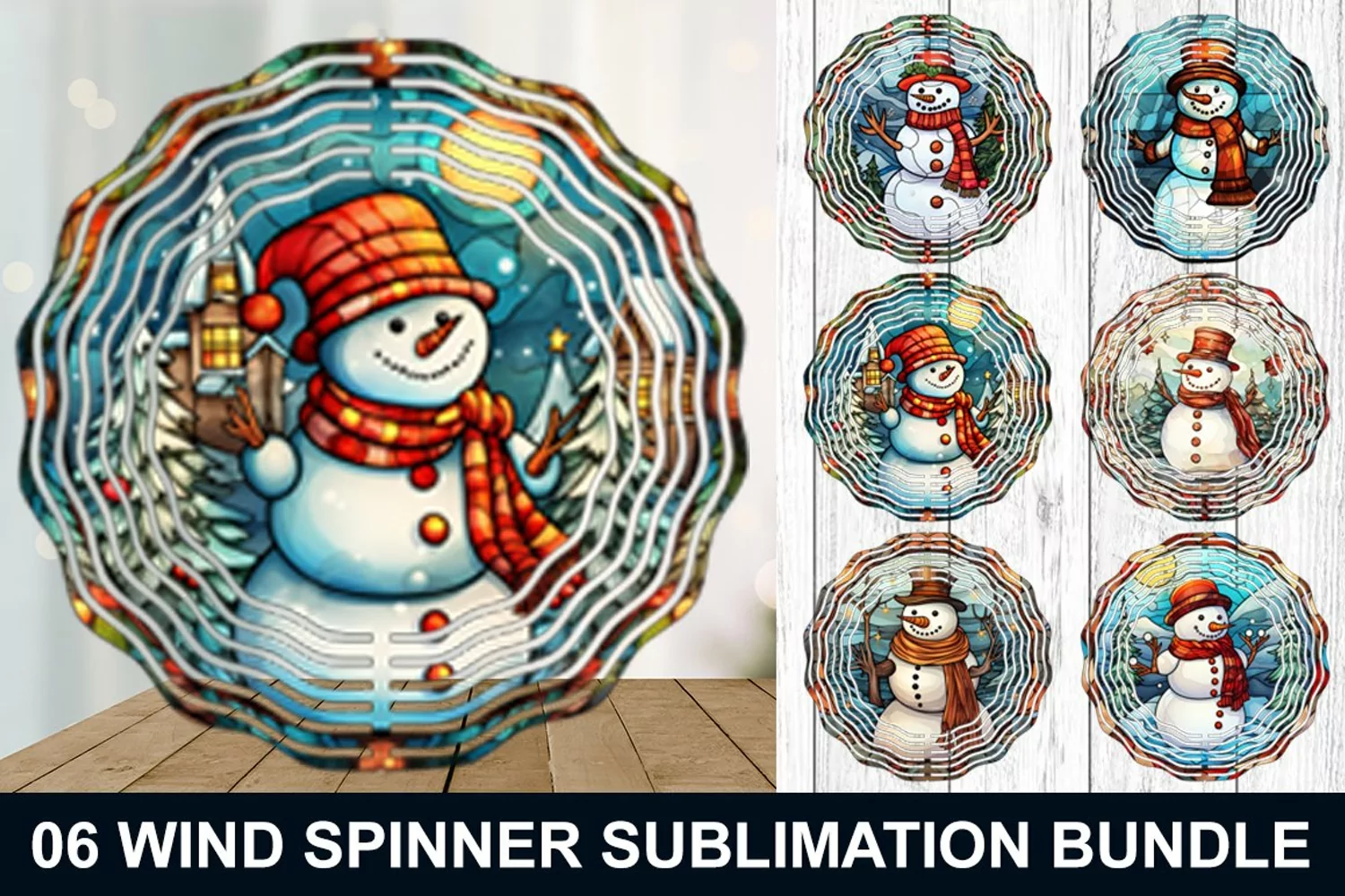 Snowman Stained Glass Wind Spinner Bundle