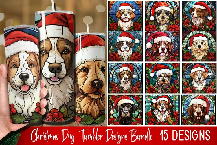 Christmas Dog Tumbler Designs Bundle - 20oz Skinny Tumbler