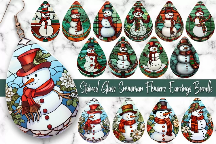 Stained Glass Christmas Snowman flowers Earrings Bundle example image 1