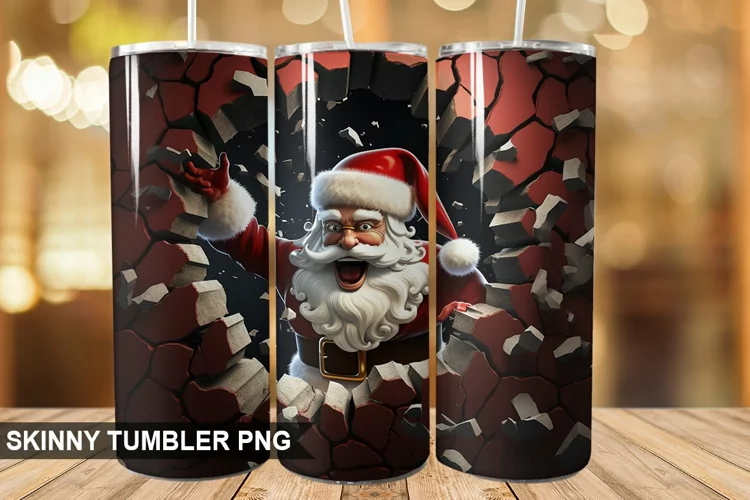 3D Christmas Santa Cracked Hole PNG Tumbler Design