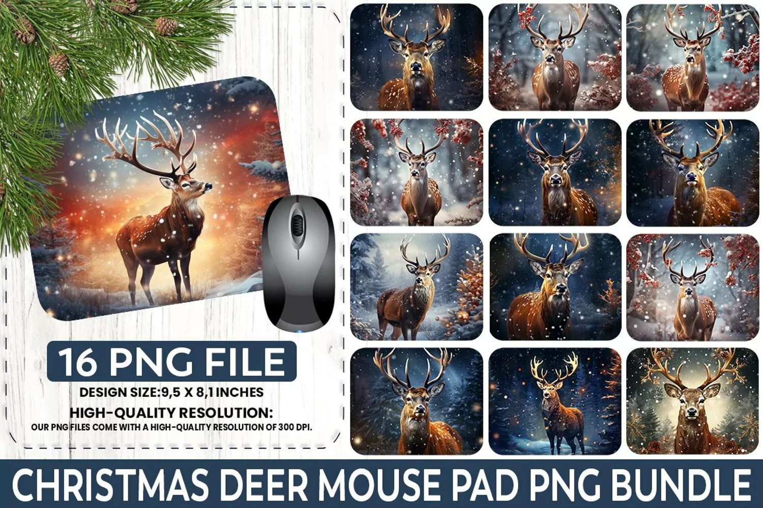 Christmas Deer Sublimation Mouse Pad PNG Bundle