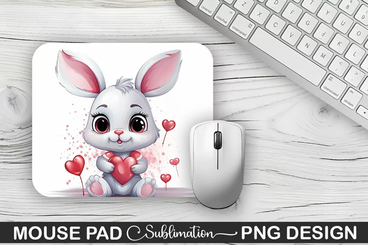 Valentine Bunny Sublimation Mouse Pad PNG Design example image 1