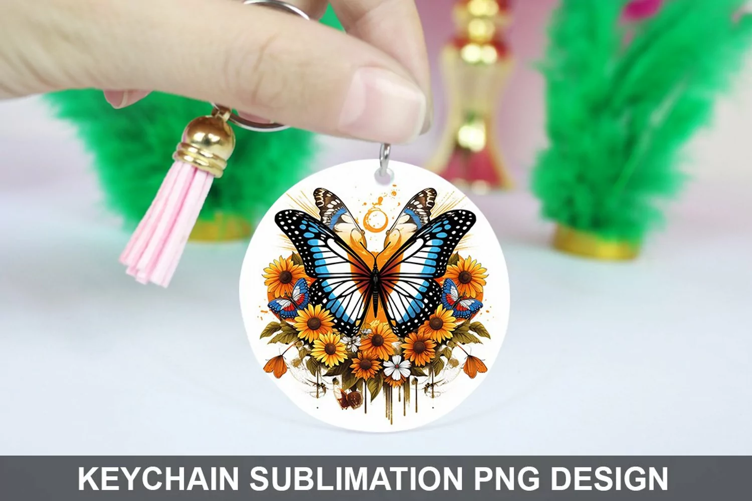 Butterfly And Sunflowers - Keychain Sublimation Design