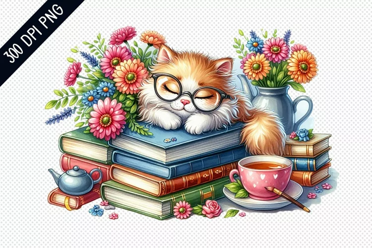 Similar Design Products to Books And Sleeping Cat Sublimation - Clipart PNG Design