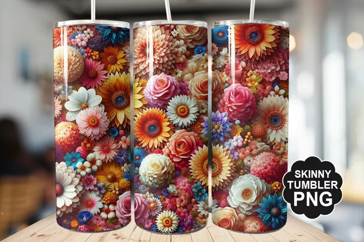 Instant Digital Tumbler Png Tumbler Png Design Sublimation Tumbler Design Floral Tumbler Design Tumbler Wrap Png Tumbler Wrap Designs Cute Tumbler Wrap Tumbler Sublimation Design Png Beautiful Mixed Colorful Flowers Png