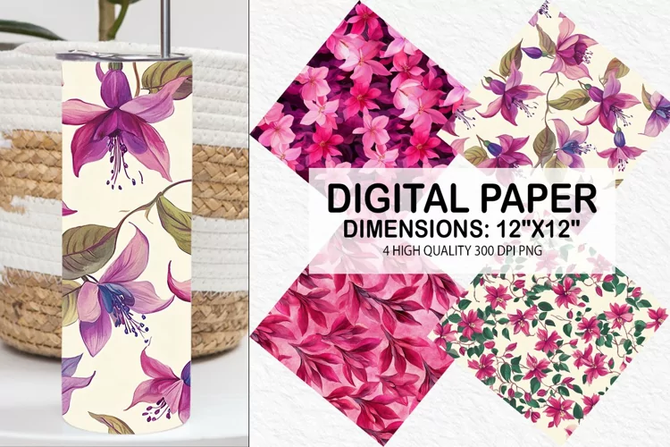 Similar Design Products to Fuchsia Flowers Pattern Digital Paper- Flowers Background