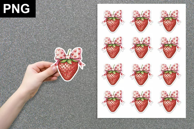 Valentines Cherries with Coquette Bow Sticker, Cherrie Sticker PNG