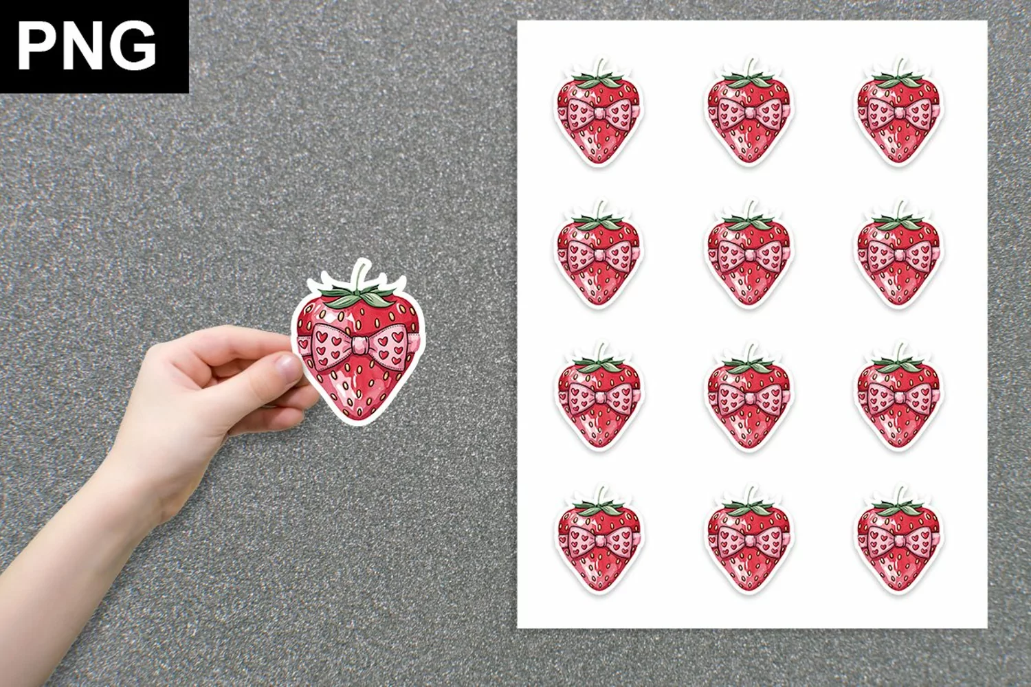Valentines Cherries with Coquette Bow Sticker, example image 1