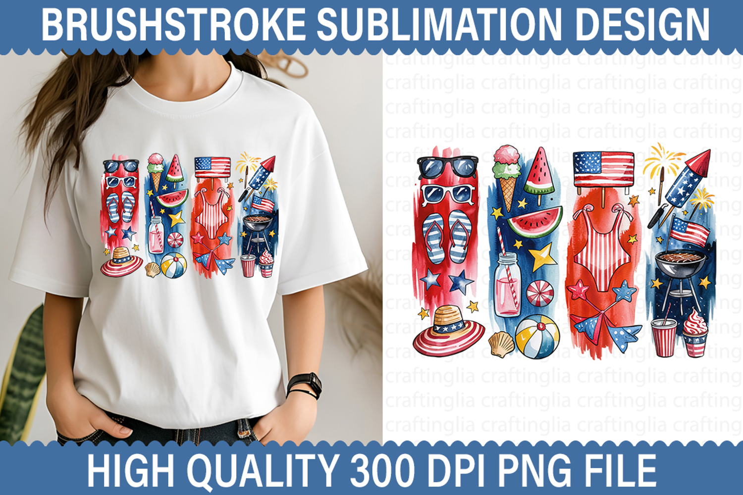 4th of July Brushstroke Sublimation - Patriotic Brushstroke example image 1