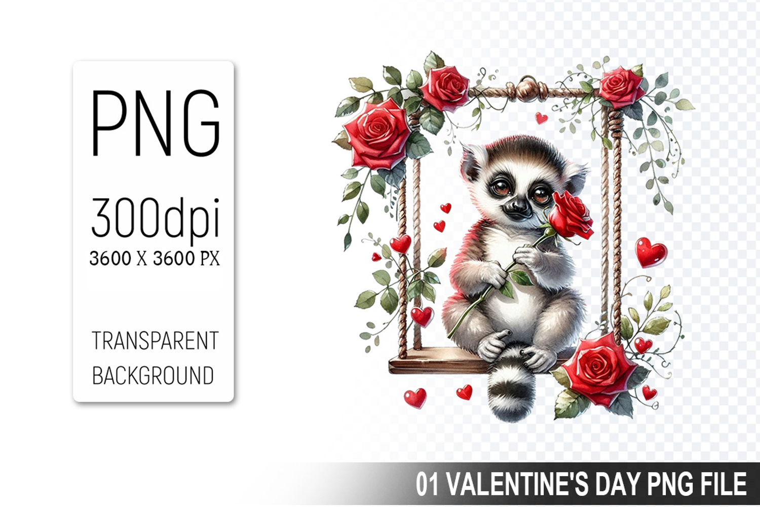 Valentine's Lemur Cub Clipart PNG, Digital Download File example image 1