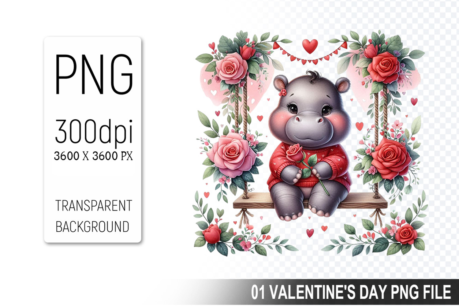 Valentine's Hippo Cub Clipart PNG, Digital Download File