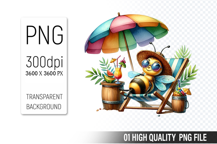 Similar Design Products to Summer Bee Clipart PNG | Summer Watercolor Animals Clipart