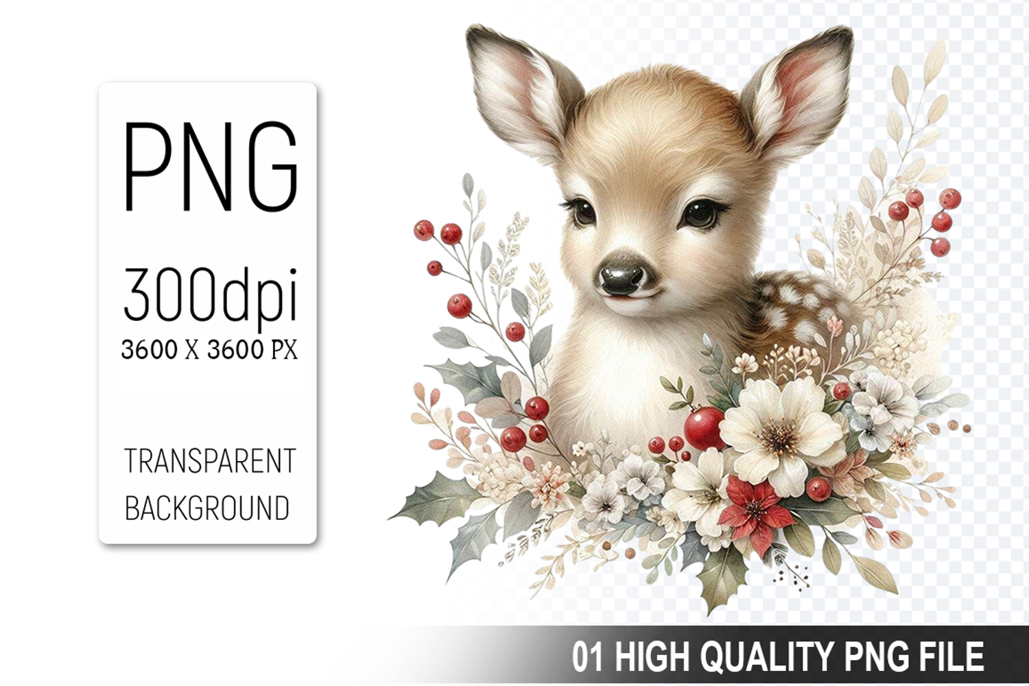 Similar Design Products to Floral Deer Clipart PNG, Watercolor Animal with Flowers