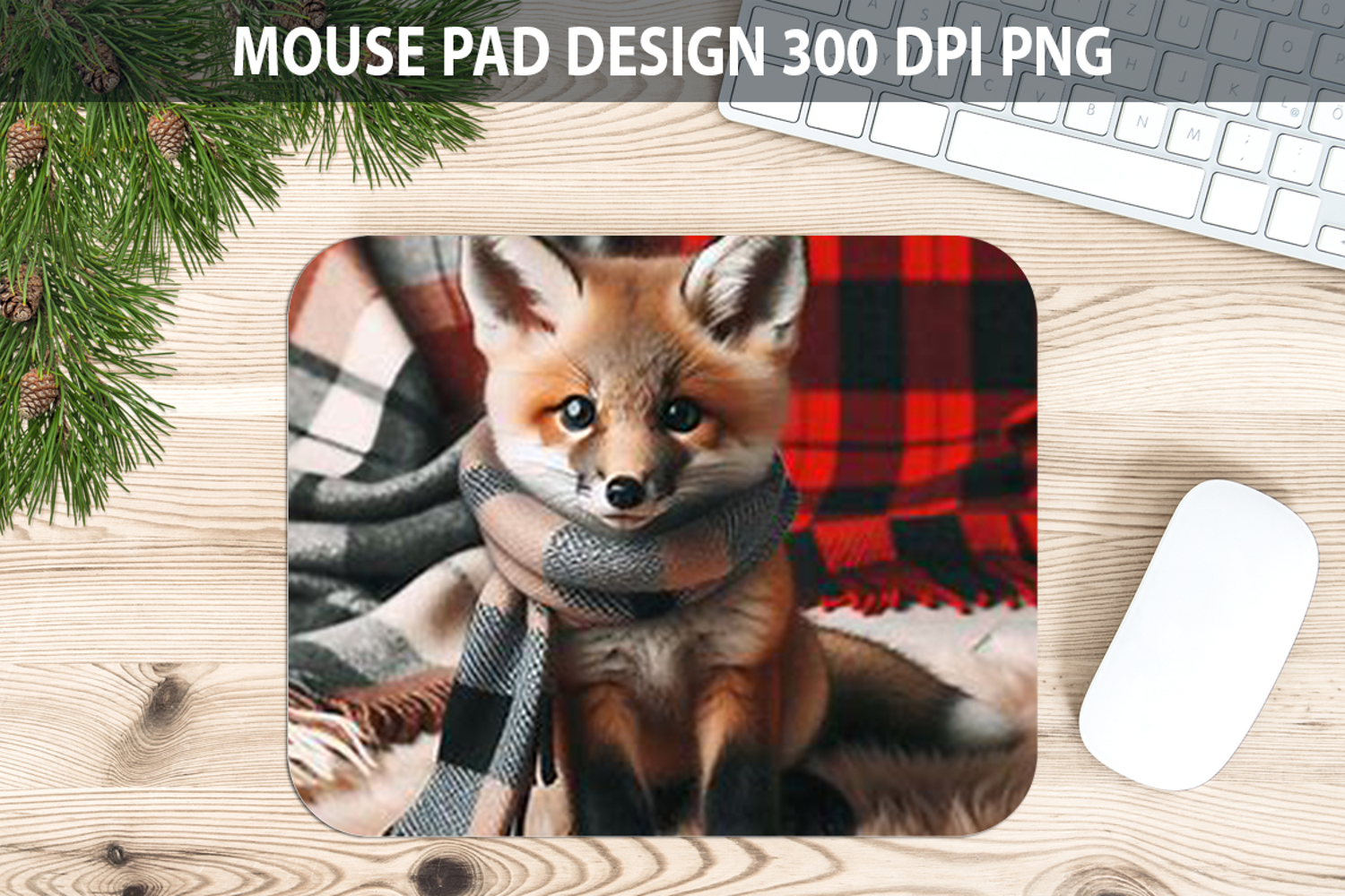 Christmas Cute Fox Mouse Pad Sublimation - Animal PNG Design
