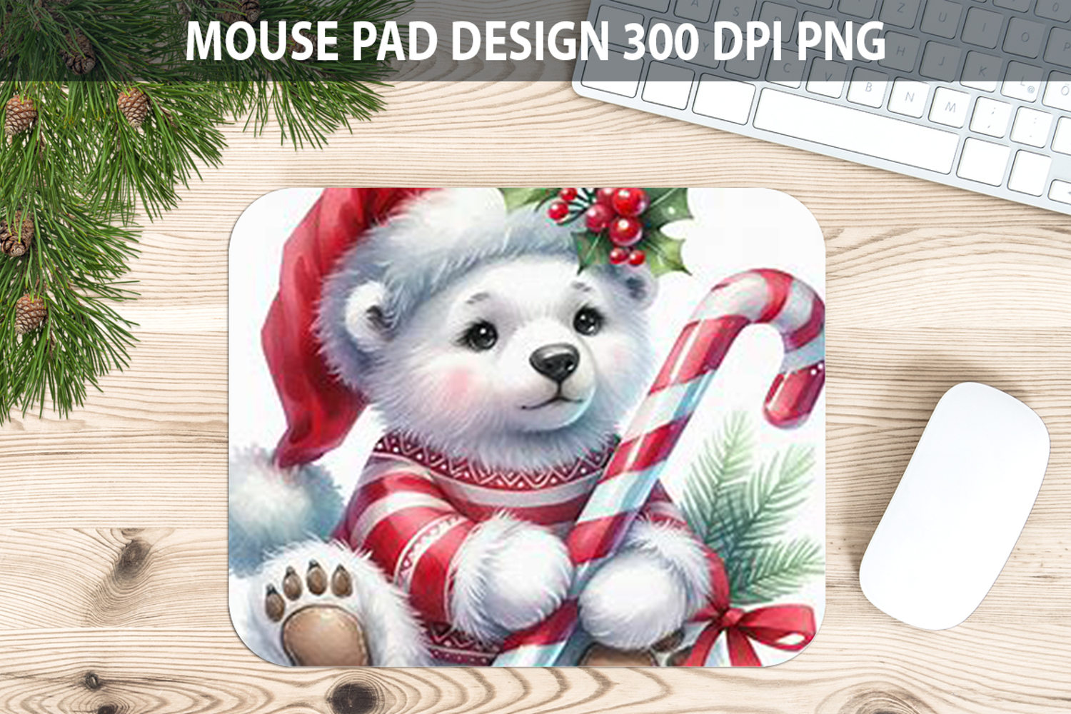 Bear Mouse pad Sublimation - Christmas Animal PNG Design
