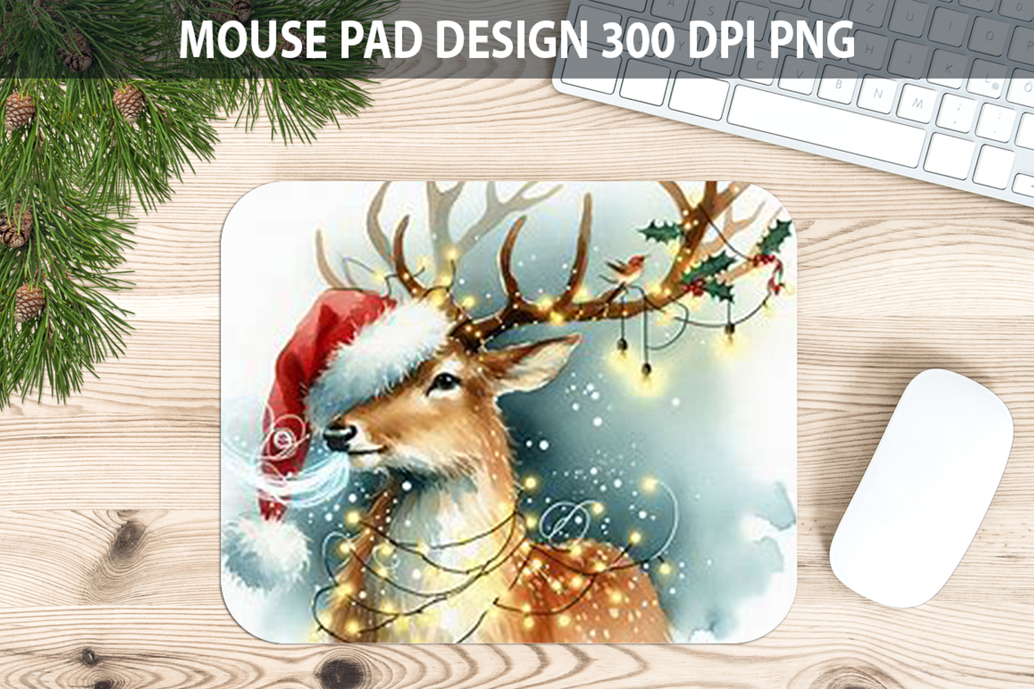 Deer Mouse pad Sublimation - Christmas Animal PNG Design