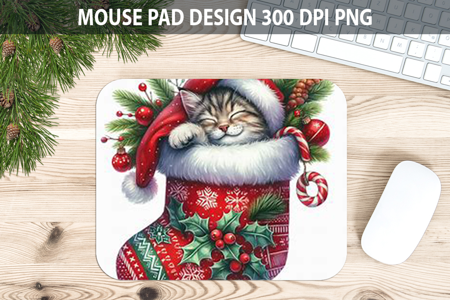 Cat Mouse pad Sublimation - Christmas Animal PNG Design