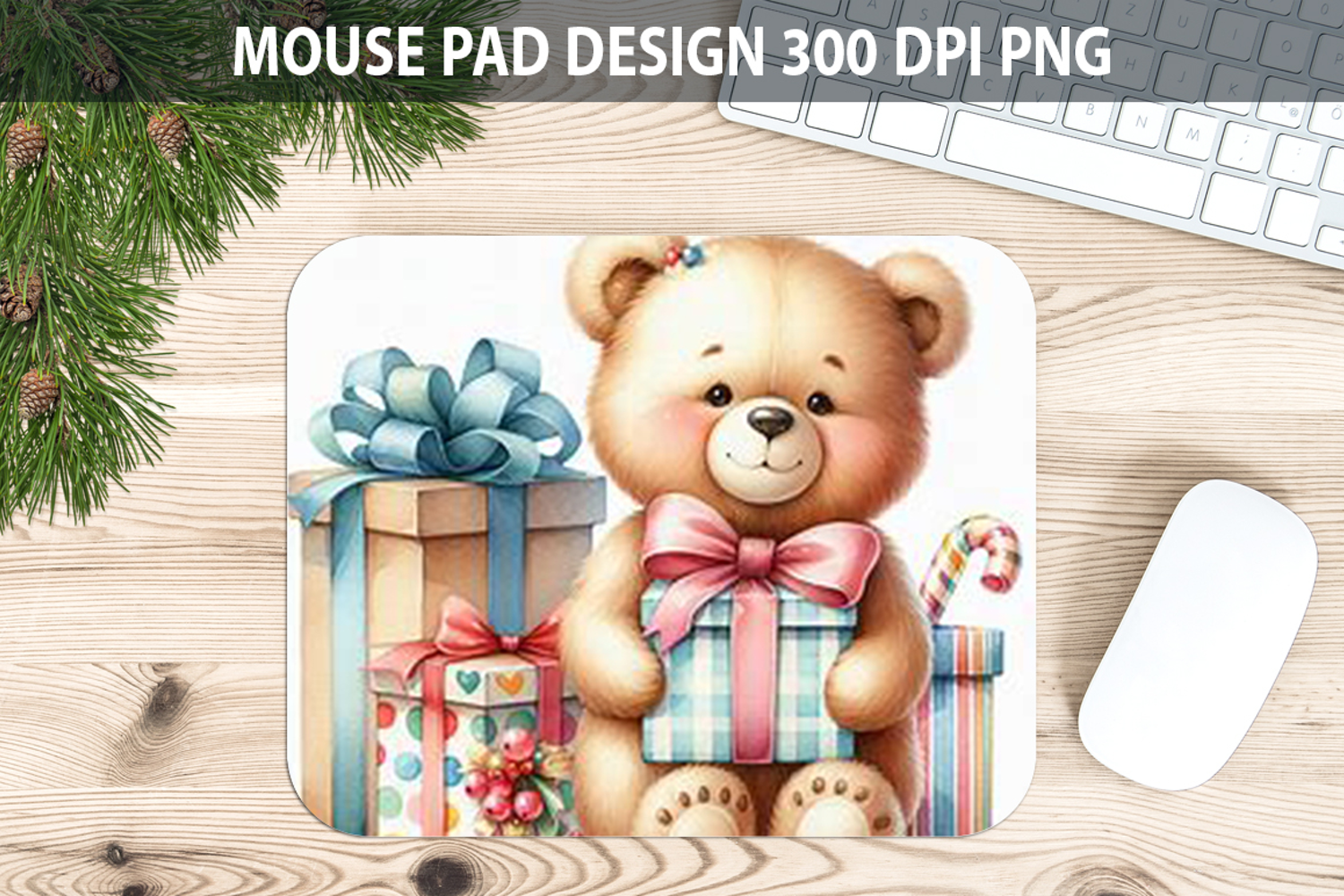 Teddy Bear Mouse pad Sublimation - Christmas Animal PNG example image 1