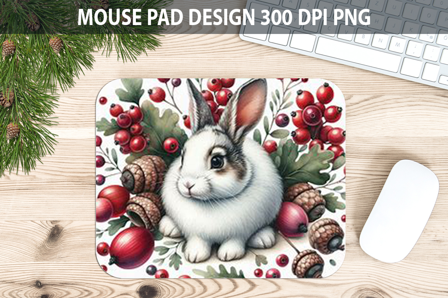 Bunny Mouse pad Sublimation - Thanksgiving Animal PNG Design